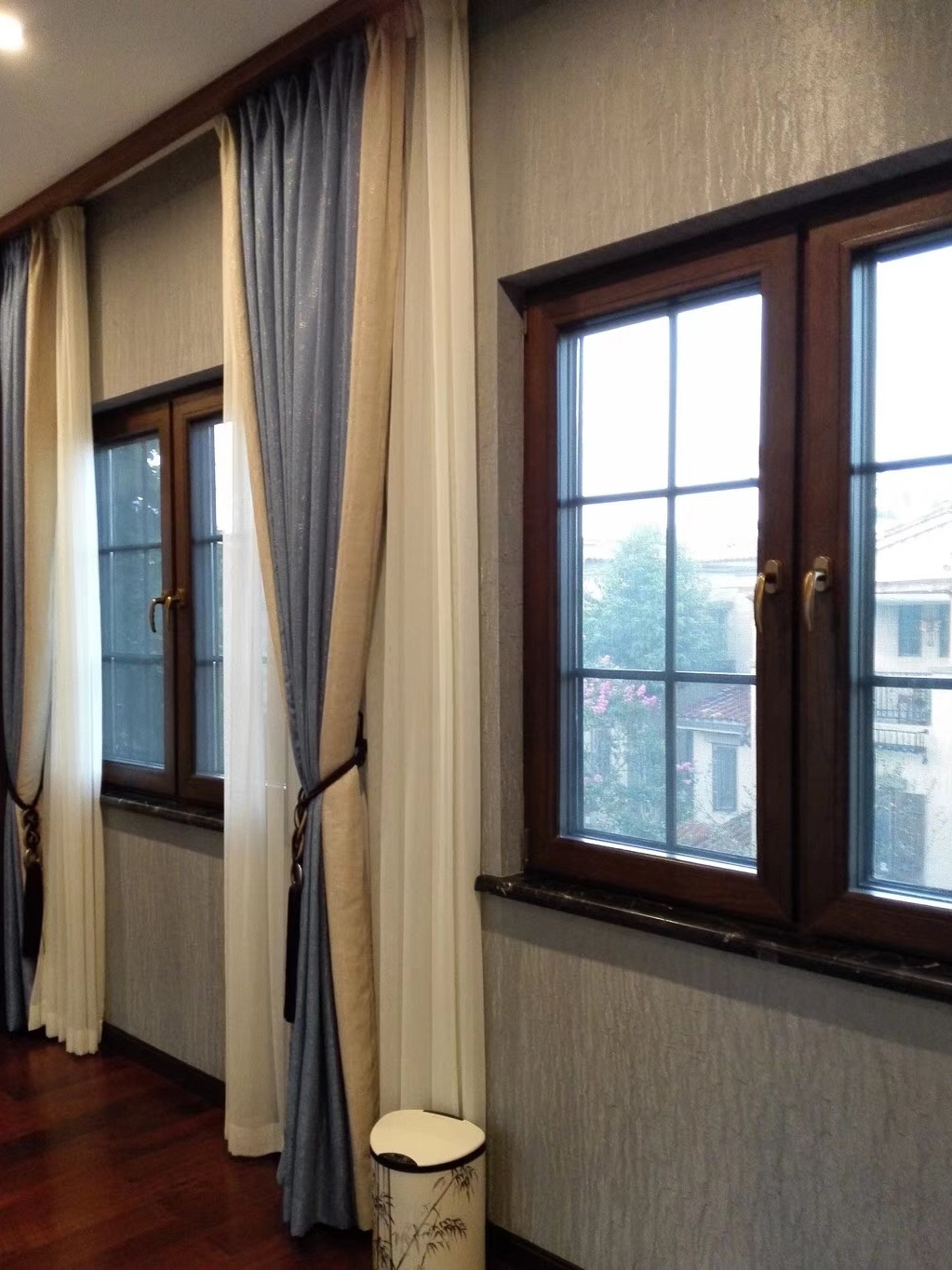 • 鋁包木窗隔音效果好,得到業主的認可由于住在市中心,用斷橋窗根本沒有效果;所以隔音窗是我的首選